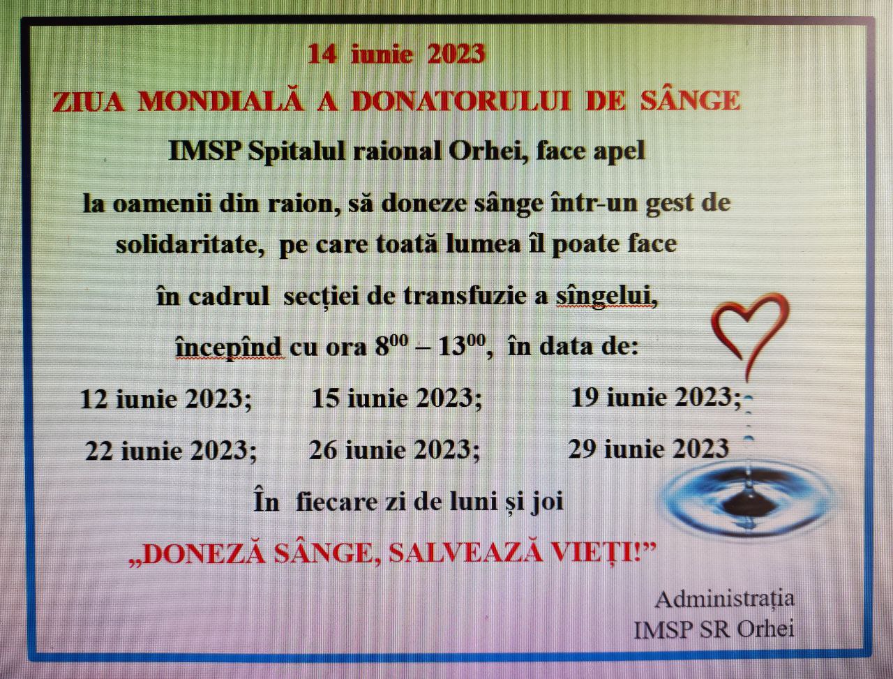Zilei Mondială a donatorului de sânge 14 iunie 2020” Centrul Național de Transfuzia a Sângelui.
